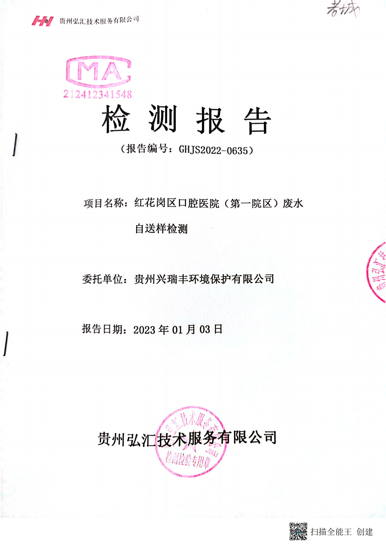 医院污水监测报告公示